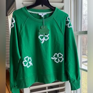 Jane + Delancey Green Clover Sweatshirt NWT St Patrick Shamrock size Large
