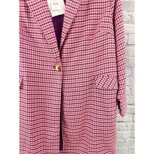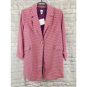 J. Jill Womens XL Pink Houndstooth Blazer One Button Career Jacket NWT