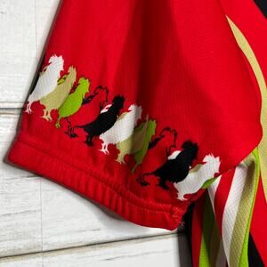Santini SMS short sleeve cycling jersey in size XXL. This performance cycling top features a bold red, black, green, and white graphic design with rooster accents and “Chianti” script across the front and sleeves, giving it a distinctive Italian cycling aesthetic.