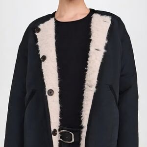 The Alex Mill Reversible Polar Bear Jacket is a 2-in-1 piece featuring soft sherpa on one side and a quilted liner on the other.