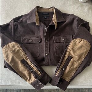 Banana Republic Brushed Cotton With Suede Elbows and Inside Collar