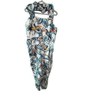 Farm Rio Toucans Crossed Back Frilled Jumpsuit