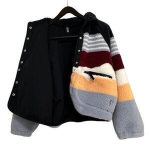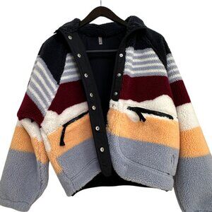 NWOT Free People Hit The Slopes Printed Fleece Jacket Striped - Size Small