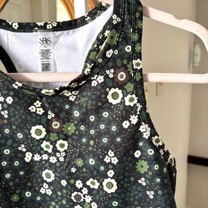 SSYS / NWT Green Neutral Floral Longline Sports Racerback Tank Bra