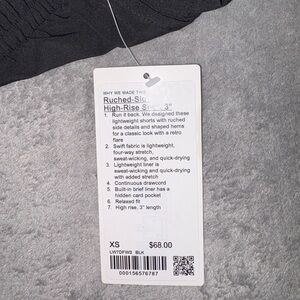 NWT lululemon athletica black ruched-side high-rise short 3” length size xsmall