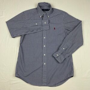 Ralph Lauren Mens Gingham Check Button Down Shirt Navy Blue White Small S P