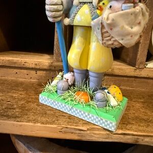 This listing is for one vintage inspired Charming rabbit nutcracker featuring pastel blue and pink accents. Perfect for adding a whimsical touch to your decor. This is too cute and I handpicked it to sell especially for you. This nutcracker has the prettiest pastel colors. It has grayish white hair and gold glasses. It is in great condition! Does have some normal wear to it such as discoloration in some areas, minor chips and the pom pom on back is flat and slightly discolored. This is so adorable and these minor imperfections only add character to this piece. Please refer to all photos and ask any questions that you may have. All props in photos are for display only. Measures approximately 12 1/4” tall by 5” at widest part by 3” deep.