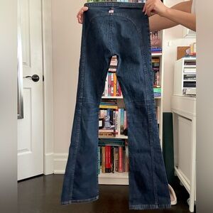 Chic flare jeans with a sleek dark blue finish. Perfect for elevating any outfit. They don’t fit me anymore but I was obsessed with these amazing jeans when they fit!