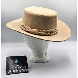 Anthropologie ASN Cordobes Hat Light Tan Faux Suede Braided Boho One Size 3232