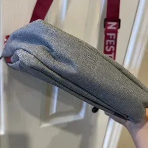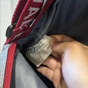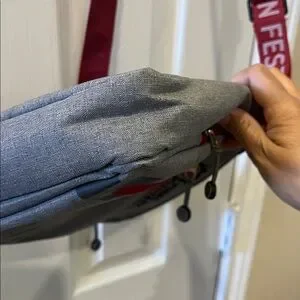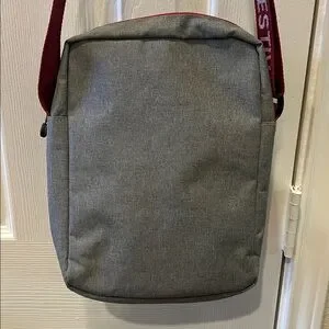 Color: Heather gray with dark red trim
