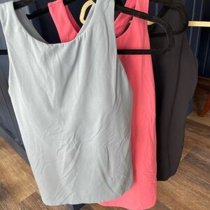 Soft stretch tank tops in three solid colors. Smooth, breathable fabric for everyday wear. Simple scoop neckline and wide straps. Easy to pair for workouts or casual outfits.