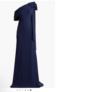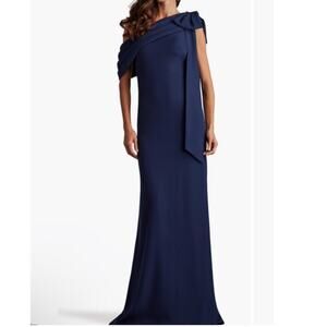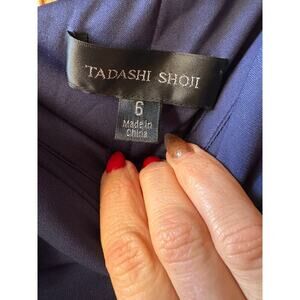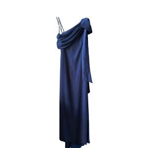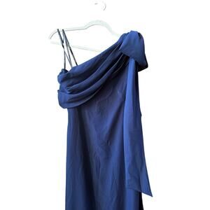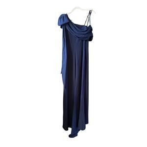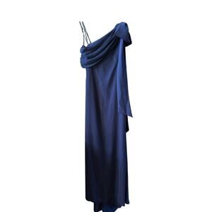 Tadashi Shoji One Shoulder Crepe Column NavyWedding Guest Gala Gown size 6