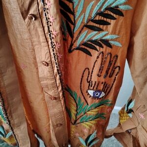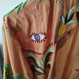 FARM RIO Mystic Embroidered + Beaded Button-Up Shirt Small