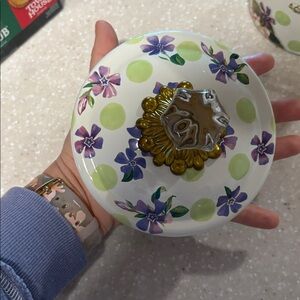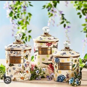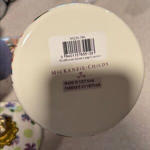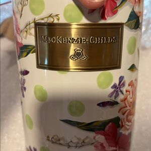 MacKenzie-Childs Floral Green Dot large Canister with Crystal Knob