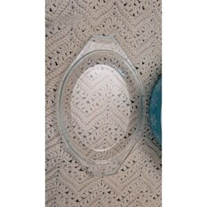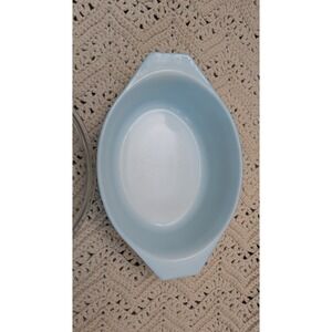 Pyrex Snowflake Turquoise Blue Oval Casserole Dish with Lid 043 1.5 QT Vintage
