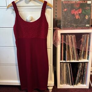Vintage 90s Glitter Mini Dress Velvet Bodycon Burgundy Betsey Johnson Sexy Hot L