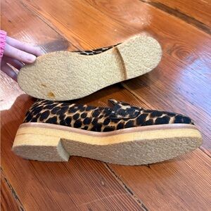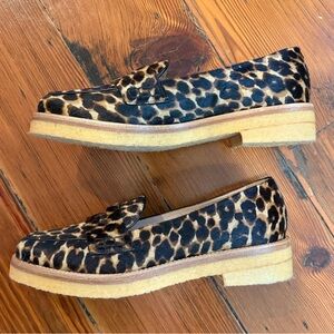 A cheetah-print genuine calf hair upper adds an edgy touch to this chunky soled, penny loafer.