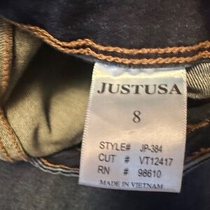 Elevate your casual style with these Just USA Dark Wide-Leg Denim Pants. Crafted from soft, stretchy denim, they offer all-day comfort without sacrificing style. The wide-leg cut gives a modern, flattering silhouette, perfect for pairing with fitted tops or tucked-in blouses. Ideal for work, weekend outings, or effortless everyday chic.