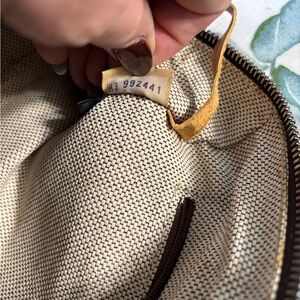 • Interior: Beige canvas lining with zip pocket, slip pocket, and key hook