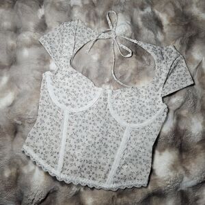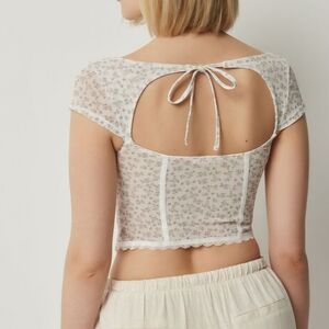 Ardene floral mesh open back bustier with lace. Perfect for coquette outfits, layering and so much more. 🌻