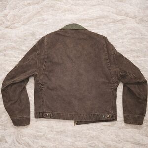 Classic Carhartt J97 Detroit jacket in Chestnut (CHT). Durable sandstone duck canvas with the iconic blanket lining and corduroy collar. This jacket has a beautiful worn-in patina that only comes with age and use.
