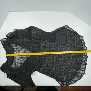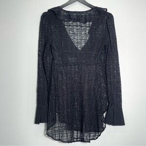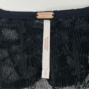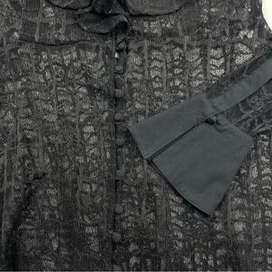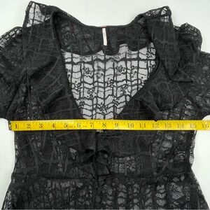 FREE PEOPLE Women's Black Sheer Lace Blouse Ruffle Neck Button Front Size Large