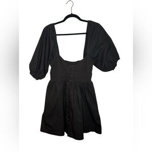 This elegant black cotton dress is perfect for any occasion. Its luxurious fabric and timeless design make it a must-have in your wardrobe and perfect for cold and hot months. Puffed sleeve detail with a sweetheart corset neckline. Side slant pockets and hidden side zipper. Double lined. New without tags. Smoke free home.