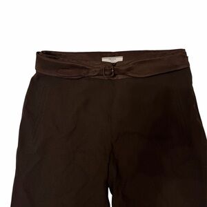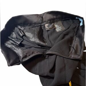 In excellent used condition, some very slight fading as shown. Very difficult to notice unless under very bright light. Silk front belt around waist. Zipper inclosure on the side. Pockets are decorative, not functional. Appears may have begun to be hemmed (please see photos of bottoms).