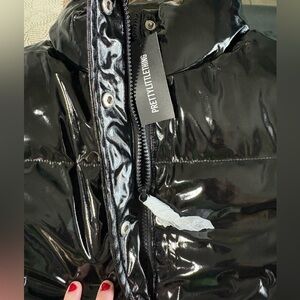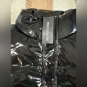 NWT PRETTYLITTLETHING Women's Black Vinyl Bubble Puffer Jacket-6 UK 2 US