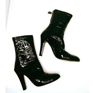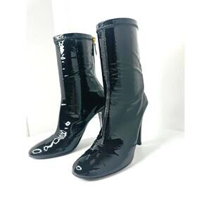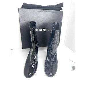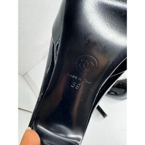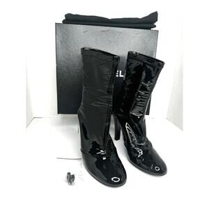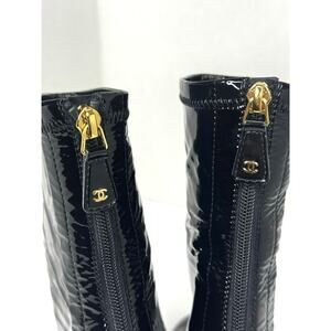 Chanel Black Patent Leather Ankle Boots Women’s Size 39 CC Logo Sock Style Booties Classic Glossy High Fashion