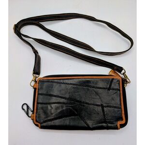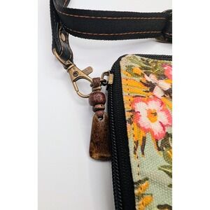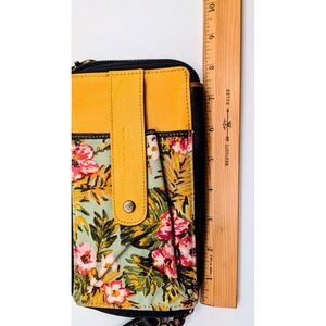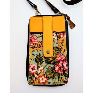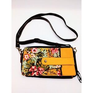 Vaan & Co Upcycled Leather Tropical Floral Crossbody Wallet Bag Yellow Black