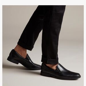 Classic slip-on loafers from Clarks. Smooth black leather upper with a clean toe. Cushioned insoles for everyday comfort. Simple, versatile style for work or casual wear.