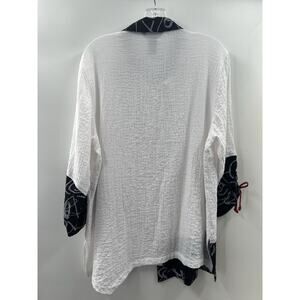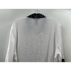Ali Miles Women’s 3/4 Ruched Sleeve Button Up Puckered Fabric Top Size Large