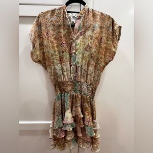 Misa Los Angeles Multicolor Paisley Ruffle smocked Dress XS