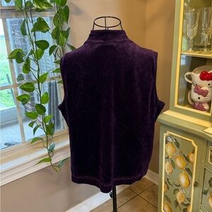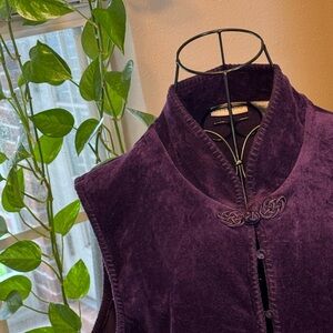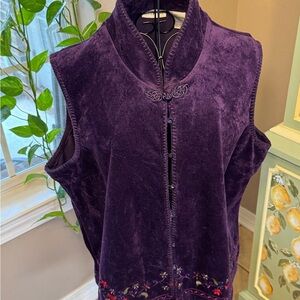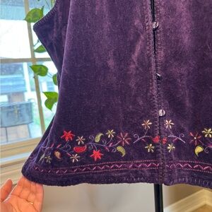 Elegant purple vest with floral embroidery. Sleeveless design. Perfect for layering.