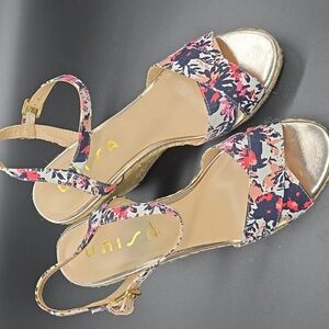 Unisa | Woman's | Floral Print | Wedge Heel | Sandals | Navy & Pink | Size 10M |