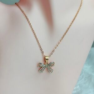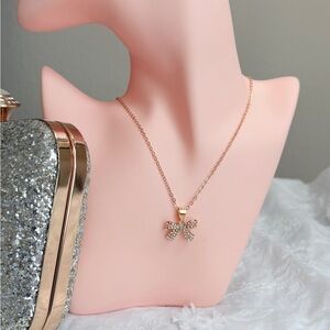 Enhance your style with this chic gold bow necklace, featuring sparkling crystal accents. A perfect accessory for any occasion.