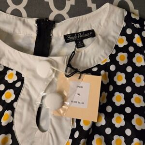 Smak Parlour Retro 60s Black Daisy Polka Dot Mod Shift Dress SP037 Womens 1X NEW