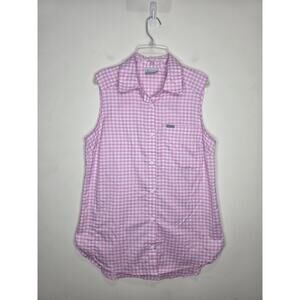 Columbia pink white gingham plaid sleeveless button down shirt tank - small