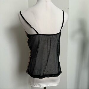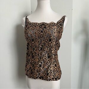 Vintage Black & Gold Lace Camisole ✨ Y2K Sheer Floral Top L
