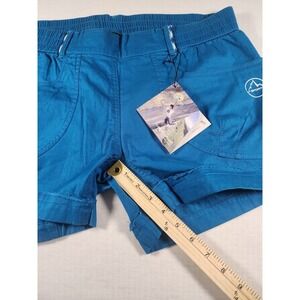 La Sportiva Escape womens climbing shorts in blue. Size XL. New with tags. Organic cotton blend, stretch, elastic pull on waist.