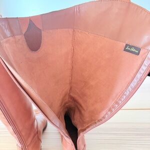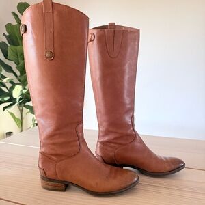 These are classic Sam Edelman Penny tall riding boots! Authentic and timeless, featuring rich cognac/tan brown genuine leather uppers that develop a beautiful patina over time. These knee-high equestrian-style boots are versatile.