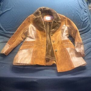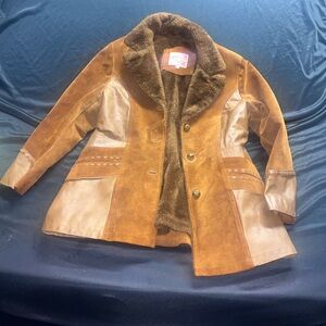 Ms. PIONEER Rust Brown Suede & Leather Trim Shearling Jacket
