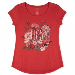 Lucky Brand Red Floral “Lucky” Graphic Tee