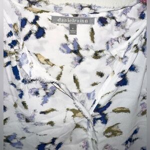 Daniel Rainn White Floral Cap-Sleeve Blouse with Blue Accents