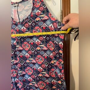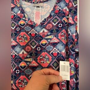 This product is NWT size XL sleeveless dress featuring characters from the Disney Cruise Line, including Captain Minnie and Mickey Mouse. The dress is designed for adults and is multicolor, perfect for fans of the Disney franchise. With its unique theme and iconic characters, this dress would make a fun and stylish addition to any Disney collection or cruise wardrobe.