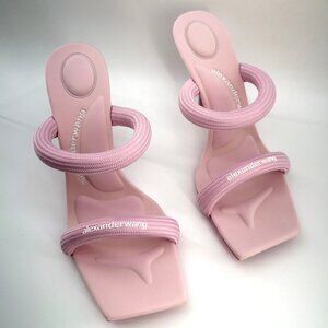 Alexander Wang Julie Pink Tubular Logo Sandals Women Heeled Slides Size 41 US11