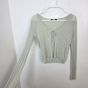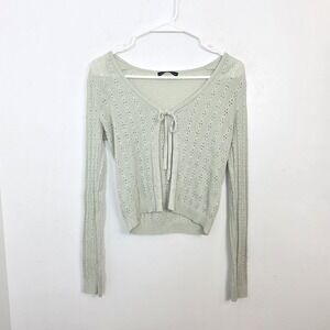 Brandy Melville Pastel Green Dainty Eyelet Open Knit Front Tie Cardigan Size M
