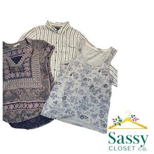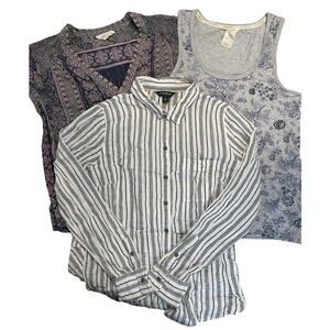 Bundle Small Tops Lucky Brand Striped Floral Blue 3-Piece Lot EUC