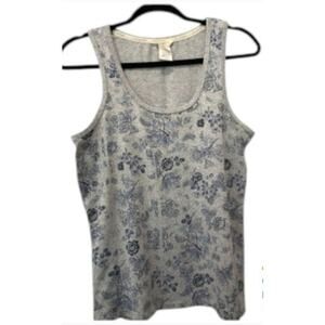 3️⃣ Gray Scoop Neck Floral Tank – S • Sleeveless • Scoop neck • Super soft stretch • Polyester/Spandex blend